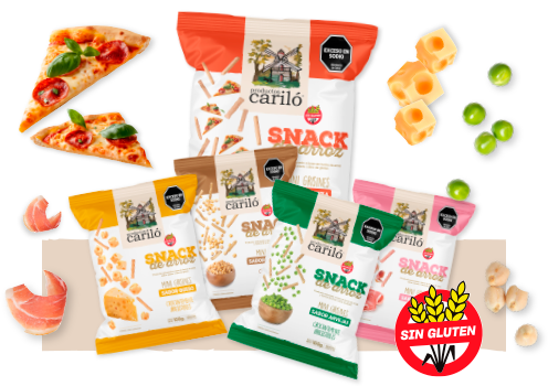 Disponibles en 5 irresistibles sabores: arvejas, garbanzos, queso, pizza y jamón, cada uno pensado para sorprenderte con su textura liviana y su inconfundible crunch.